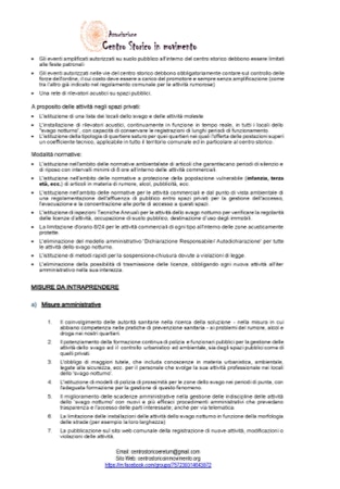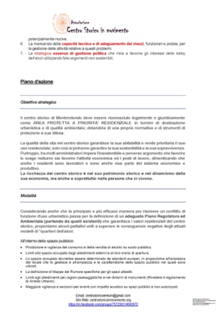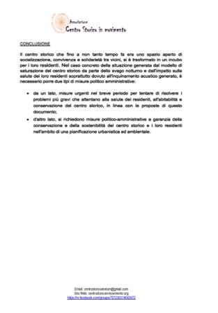 E’ un corpo organico di richieste riguardo ai problemi inerenti la quiete e la salute pubblica del Centro Storico e relative misure necessarie per soddisfarle.