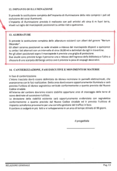 La gara è stata aggiudicata, l’avvio dei lavori è fissato entro la fine del 2020, ma il progetto esecutivo non è stato modificato e benché richieste, le perizie tecnico-agronomiche circa lo stato delle singole alberature non sono state rese pubbliche.